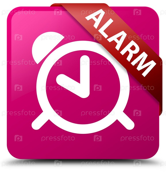 Сигнализация розовая квадратная кнопка красная лента в углу