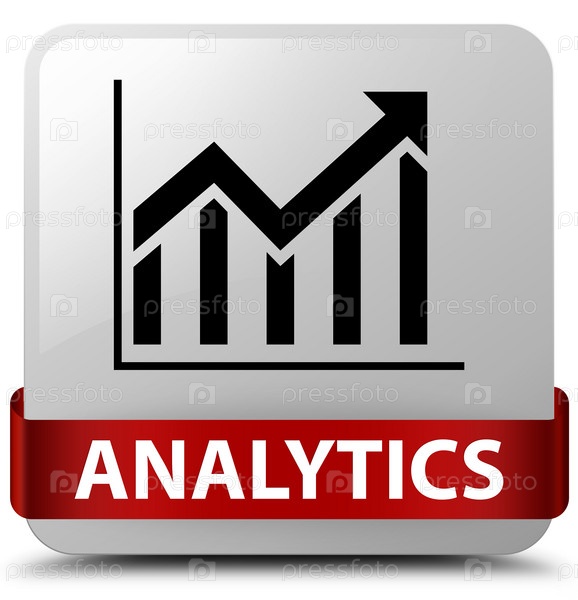 Аналитика (икона статистики) белая квадратная кнопка красная лента в середине