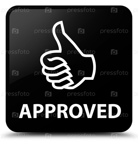 Утверждено (икона пальцев вверх) черная квадратная кнопка