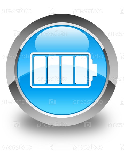 Икона батареи глянцевая синяя синевая круглая кнопка