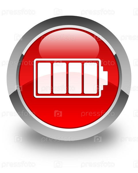 Икона батареи блестящая красная круглая кнопка