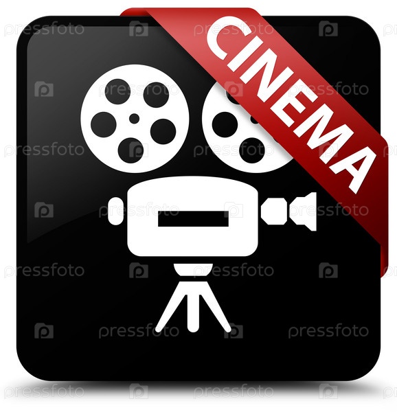Кинотеатр (икона видеокамеры) черная квадратная кнопка красная лента в углу