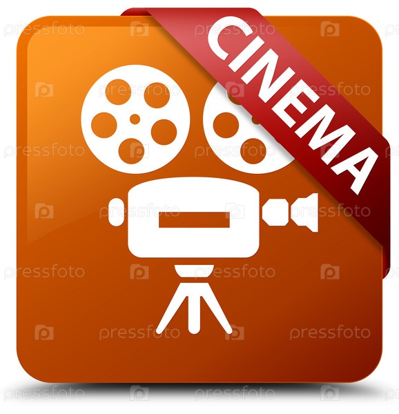 Кинотеатр (икона видеокамеры) коричневая квадратная кнопка красная лента в углу