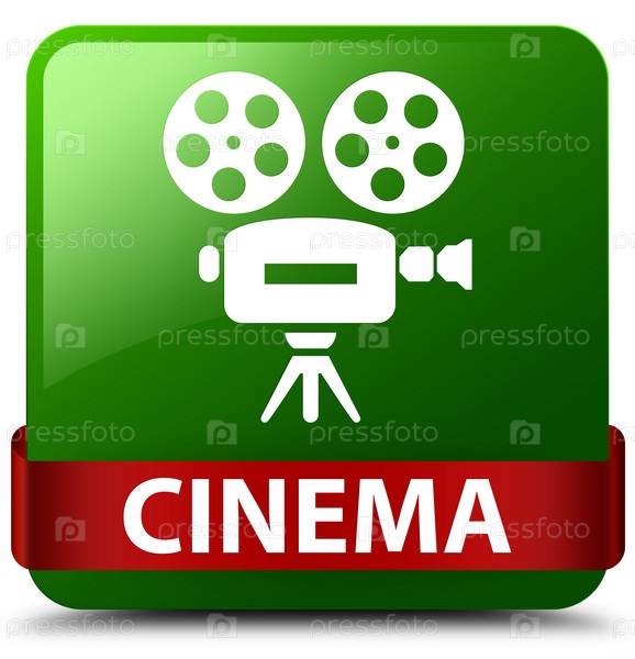Кинотеатр (икона видеокамеры) зеленая квадратная кнопка красная лента посередине