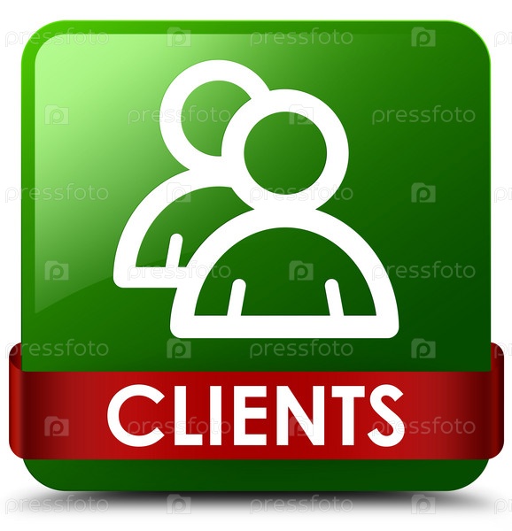 Клиенты (икона группы) зеленая квадратная кнопка красная лента посередине