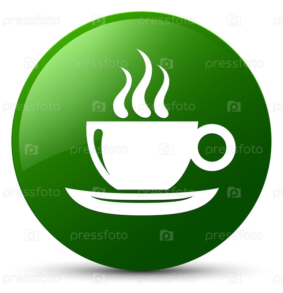 Икона кофейной чашки зеленая круглая кнопка