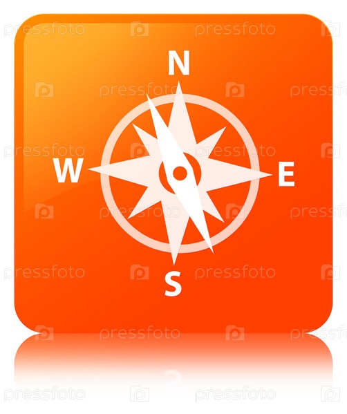 Иконка компаса оранжевая квадратная кнопка