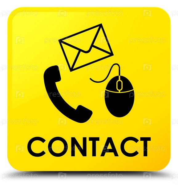 Контакт (электронная почта телефона и значок мыши) жёлтая квадратная кнопка
