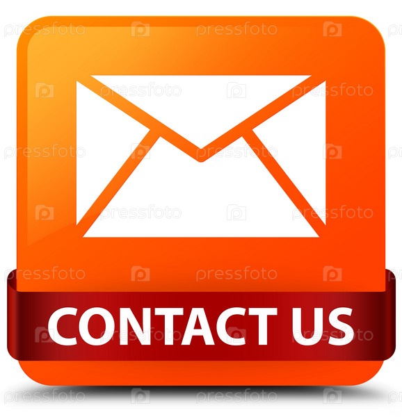 Связаться с нами (икона электронной почты) оранжевая квадратная кнопка красная лента посередине