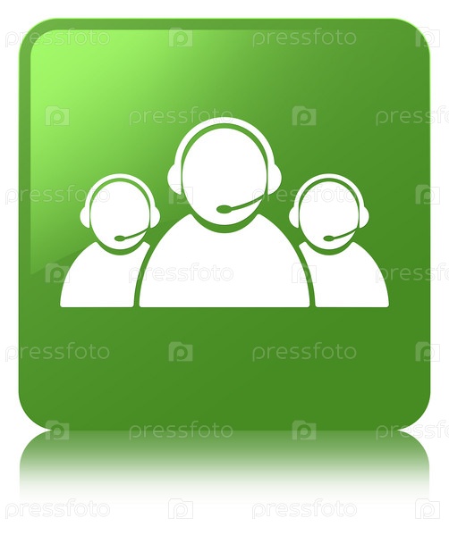 Икона команды обслуживания клиентов мягкая зеленая квадратная кнопка