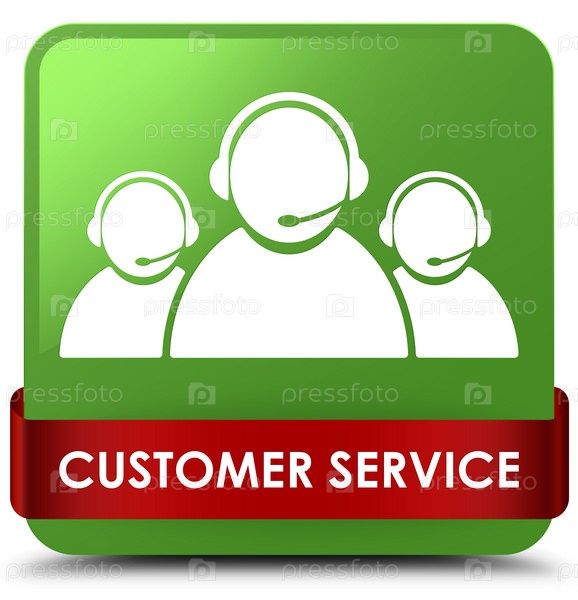 Обслуживание клиентов (икона команды) мягкий зеленый квадратный кнопка красная лента посередине