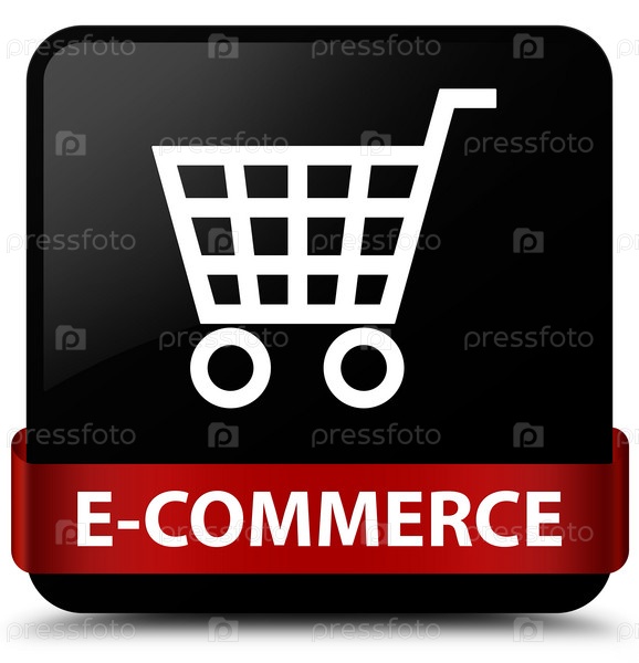 Электронная коммерция черный квадратный кнопка красная лента посередине