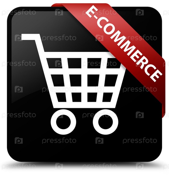 Электронная коммерция черный квадратный кнопка красная лента в углу