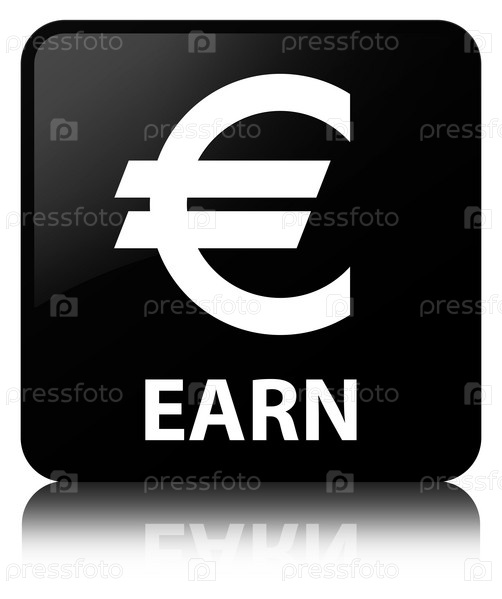 Заработать (знак евро) черная квадратная кнопка