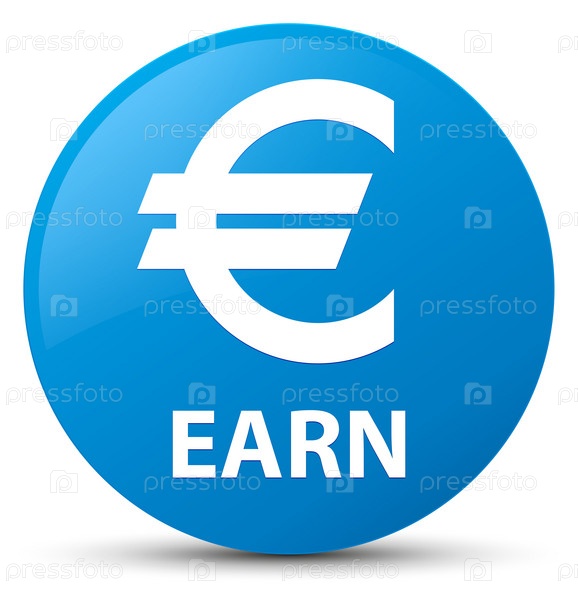 Заработать (знак евро) цыановый синий круглый кнопку