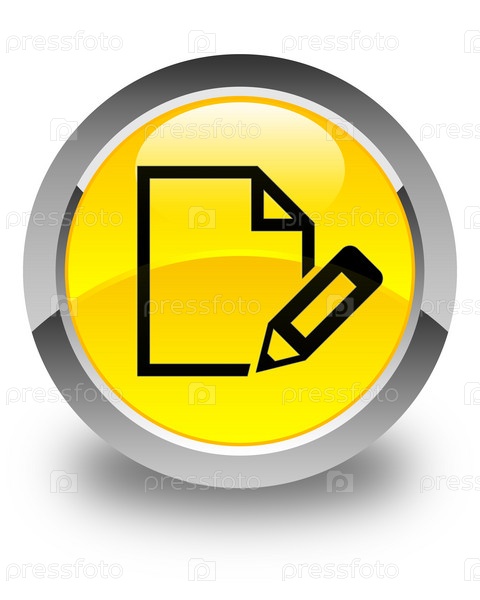 Икона документа глянцевая желтая круглая кнопка Edit