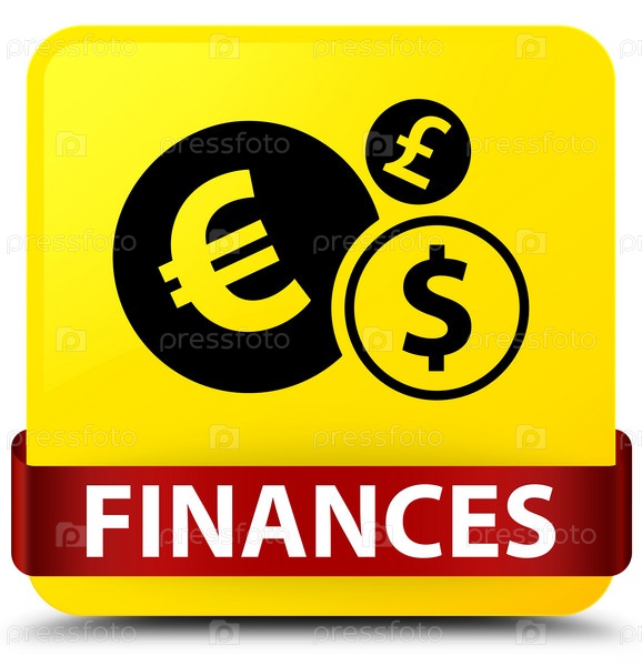 Финансы (знак евро) желтый квадратный кнопка красная лента посередине