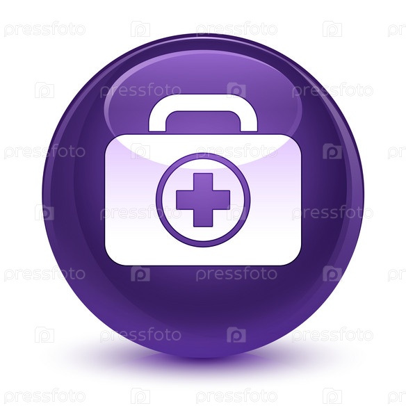 Икона аптечки первой помощи стеклянная фиолетовая круглая кнопка