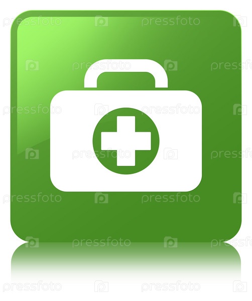 Икона пакета первой помощи мягкий зеленый квадратный кнопка