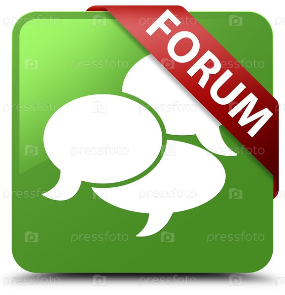 Форум (комментарии икона) мягкий зеленый квадратный кнопка красная лента в углу