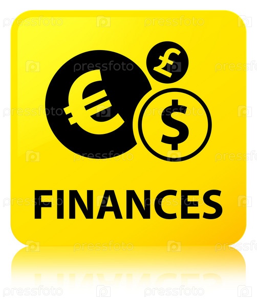 Финансы (знак евро) жёлтая квадратная кнопка