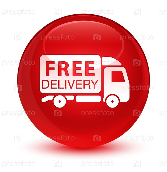 Икона бесплатного грузовика для доставки стеклянной красной круглой кнопки