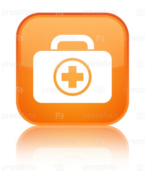 Икона аптечки первой помощи специальная оранжевая квадратная кнопка
