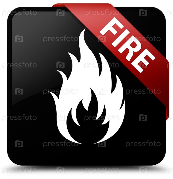 Огонь черный квадратный кнопка красная лента в углу