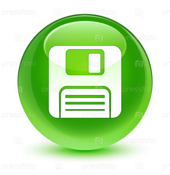 Иконка дискеты стеклянный зеленый круглый кнопка