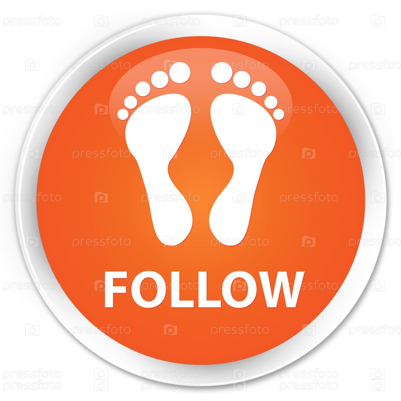 Следуйте (икона отпечатков) премиум-оранжевый круглый кнопка