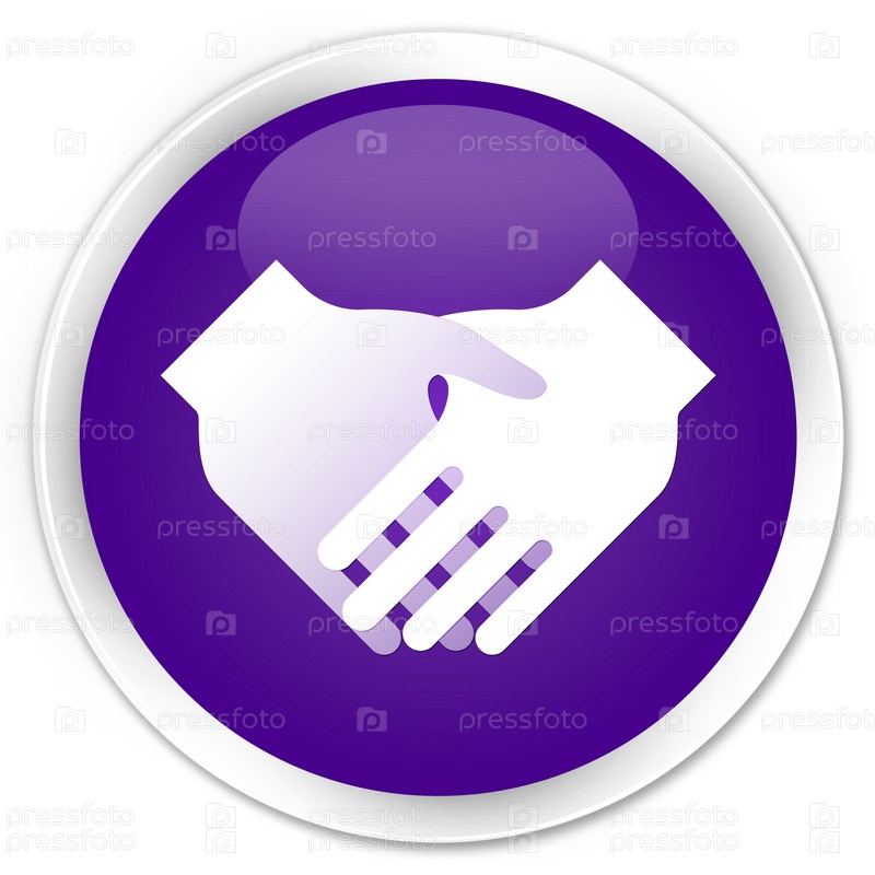 Икона рукопожатия премиум фиолетовый круглый кнопка