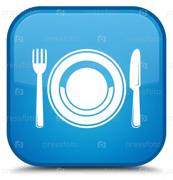 Икона пищевой тарелки специальный синий цвет синего квадратного кнопки