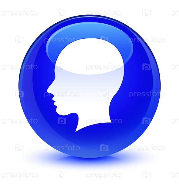 Голова икона женского лица стеклянная голубая круглая кнопка