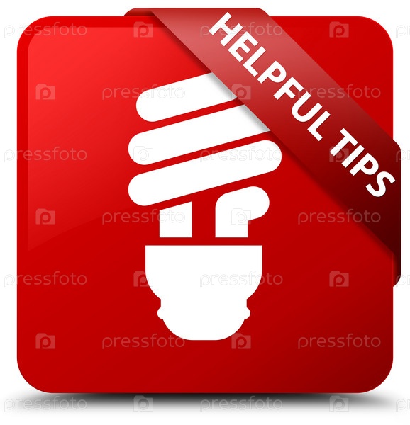 Полезные советы (икона лампочки) красная квадратная кнопка Красная лента в углу