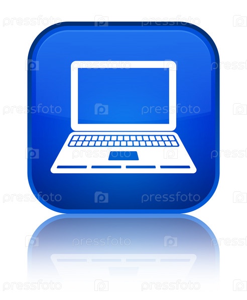 Икона ноутбука специальная синяя квадратная кнопка