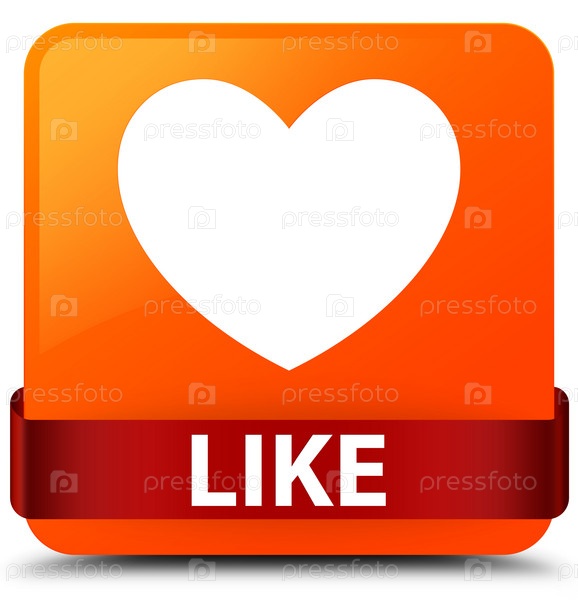 Как (икона сердца) оранжевая квадратная кнопка красная лента посередине