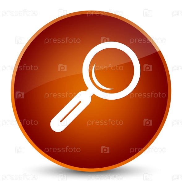 Икона увеличительного стекла с элегантной коричневой круглой кнопкой