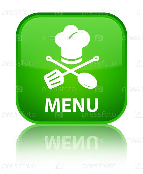 Меню (икона ресторана) специальная зеленая квадратная кнопка