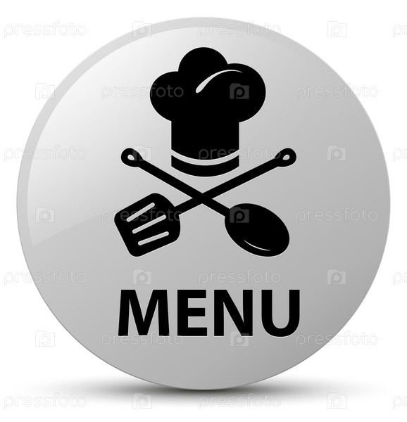 Меню (икона ресторана) белая круглая кнопка