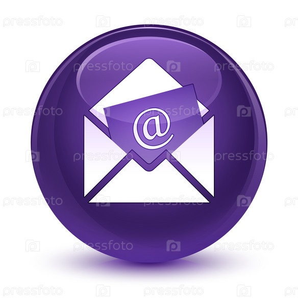 Иконка электронной почты для рассылки новостей стеклянная фиолетовая круглая кнопка