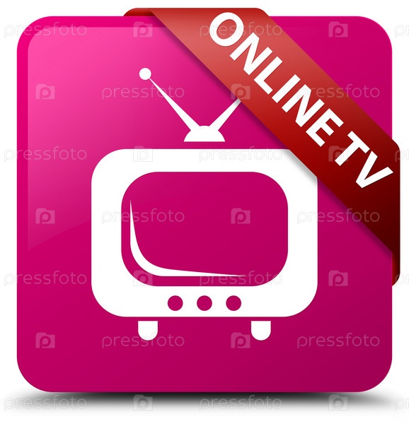 Онлайн телевизор розовая квадратная кнопка красная лента в углу
