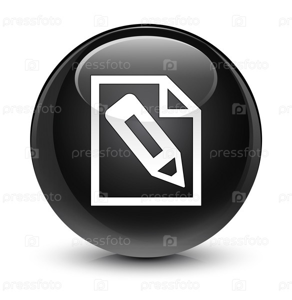Карандаш в иконе страницы стеклянная черная круглая кнопка