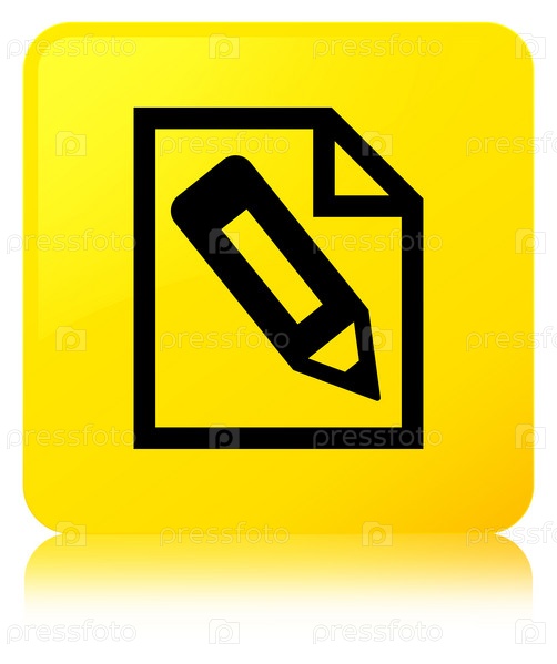 Карандаш в иконе страницы желтая квадратная кнопка