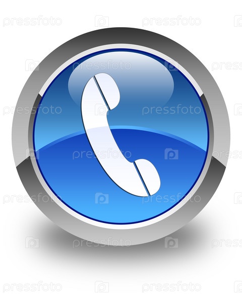 Икона телефона блестящая голубая круглая кнопка