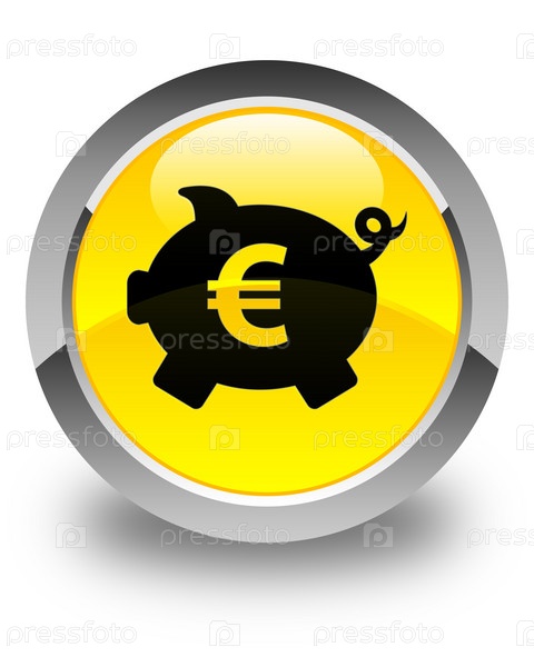 Пигги-банк икона еврознака блестящий желтый круглый кнопка