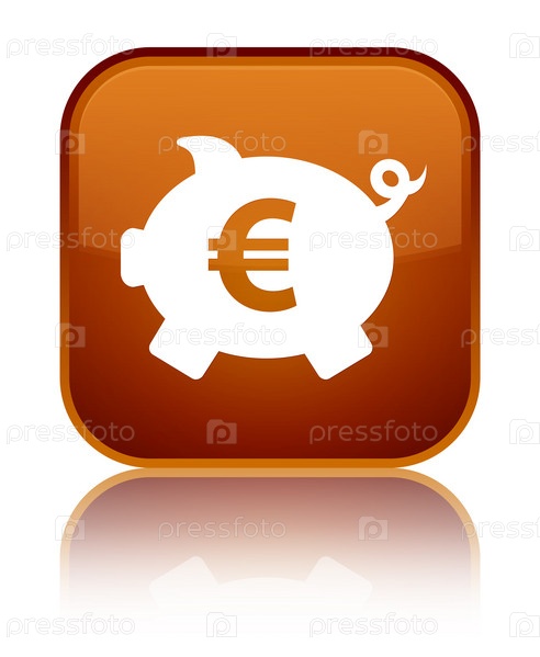 Пигги-банк икона еврознака специальный коричневый квадратный кнопка