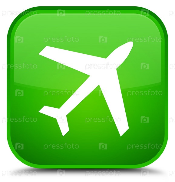 Икона самолета специальная зеленая квадратная кнопка Самолет
