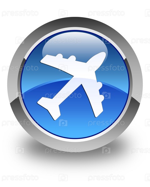 Икона самолета блестящая голубая круглая кнопка