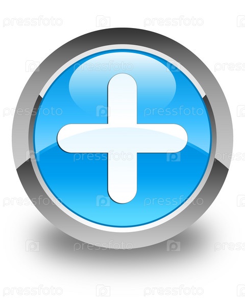 Иконка плюс глянцевая сине-циановый синий круглый кнопку