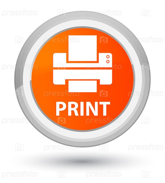 Напечатать (икона принтера) первичную оранжевую круглую кнопку